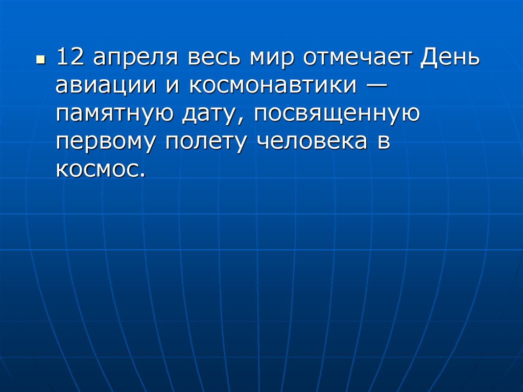12 апреля весь мир отмечает Деньавиации и космонавтики —