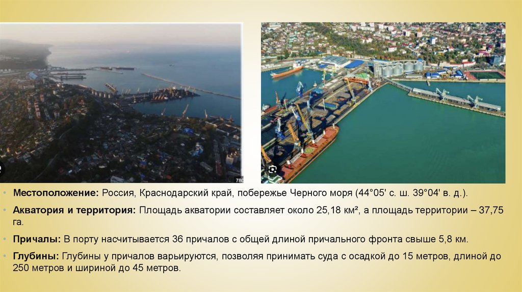 АКВАТОРИЯИнфраструктура Туапсинского морского порта представляет собой комплекс специализированных