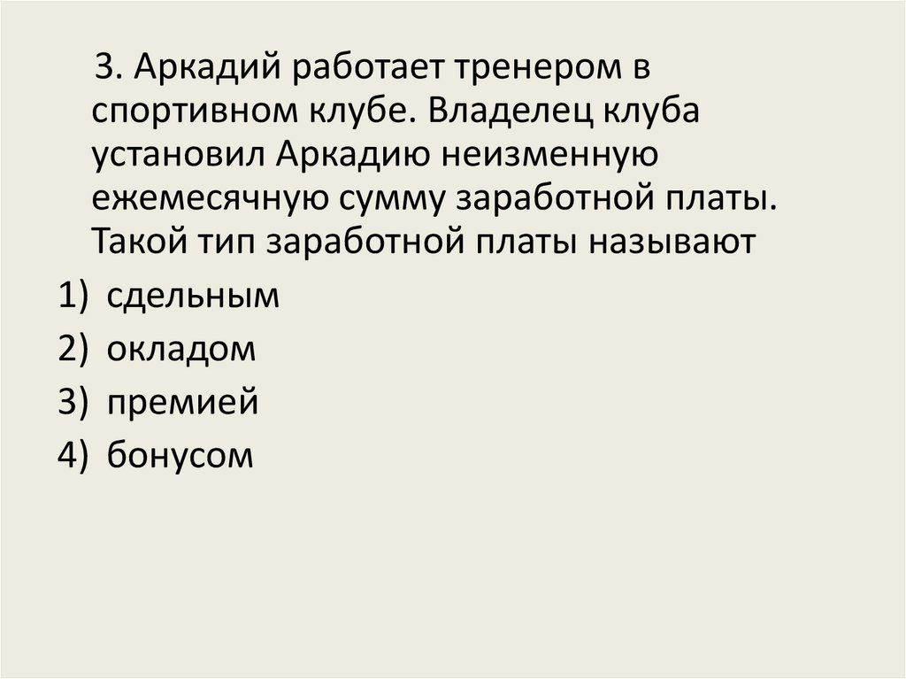 3. Аркадий работает тренером вспортивном клубе. Владелец клуба