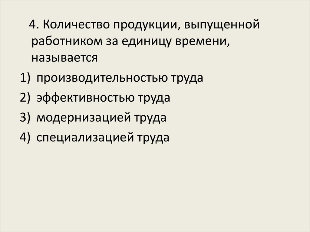 4. Количество продукции, выпущеннойработником за единицу времени,