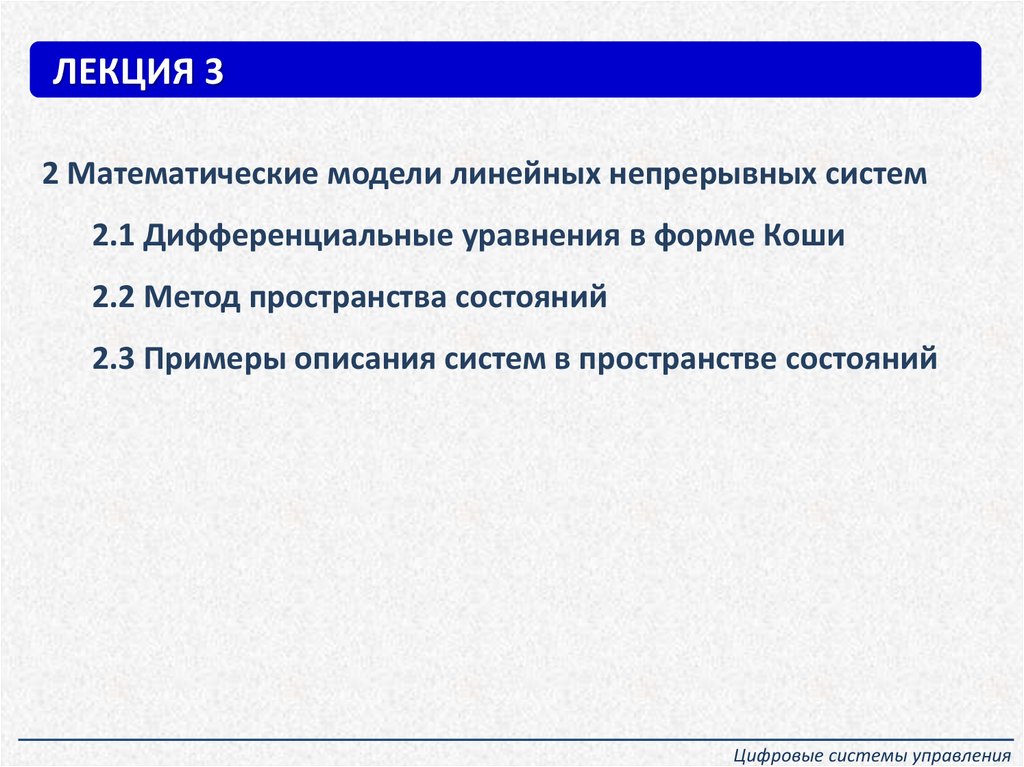 ЛЕКЦИЯ 32 Математические модели линейных непрерывных систем