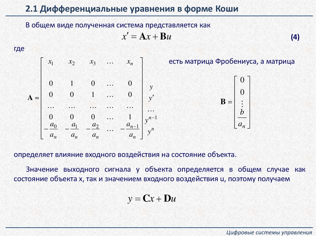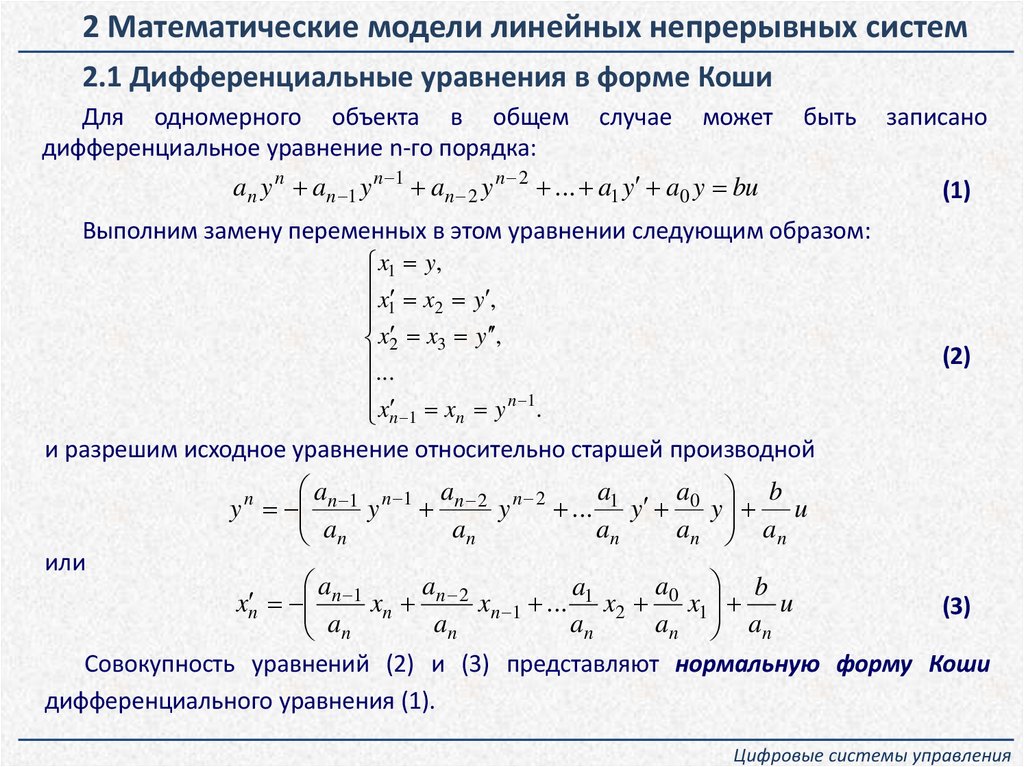 2 Математические модели линейных непрерывных систем2.1 Дифференциальные уравнения в форме Коши