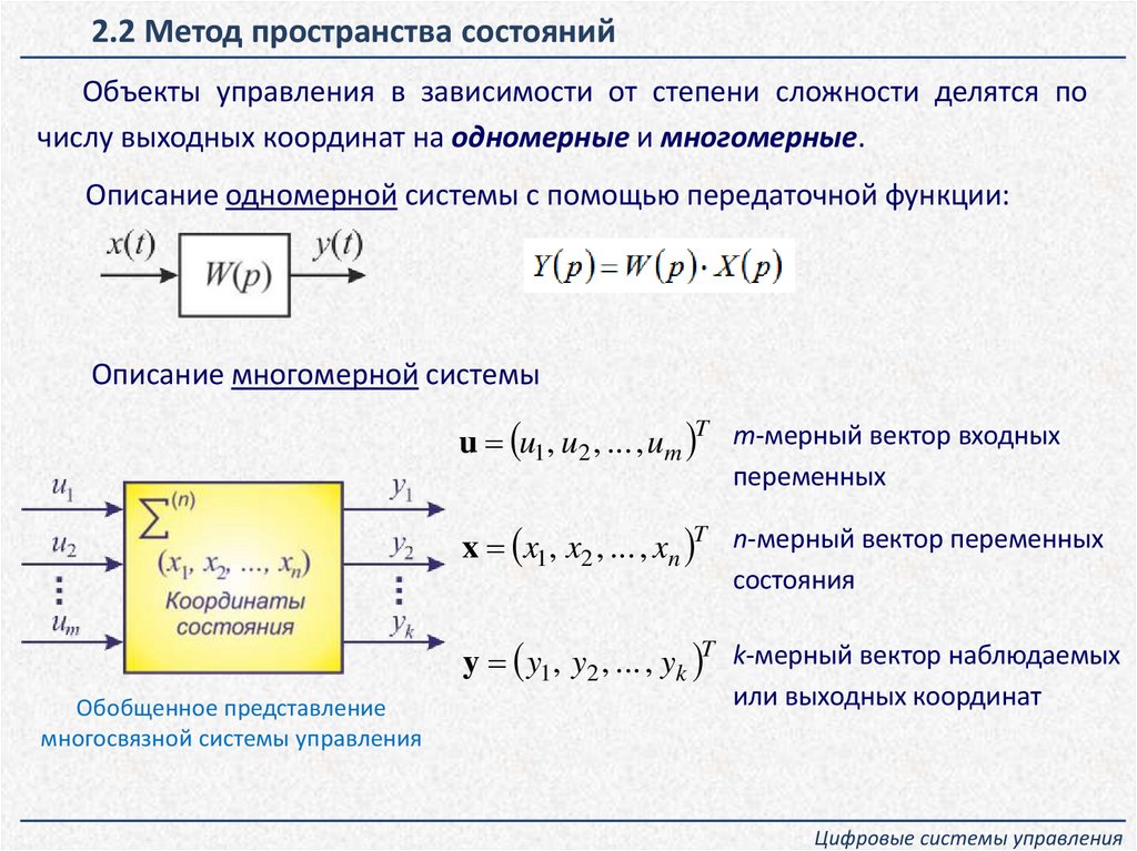 2.2 Метод пространства состоянийОбъекты управления в зависимости от степени сложности делятся по