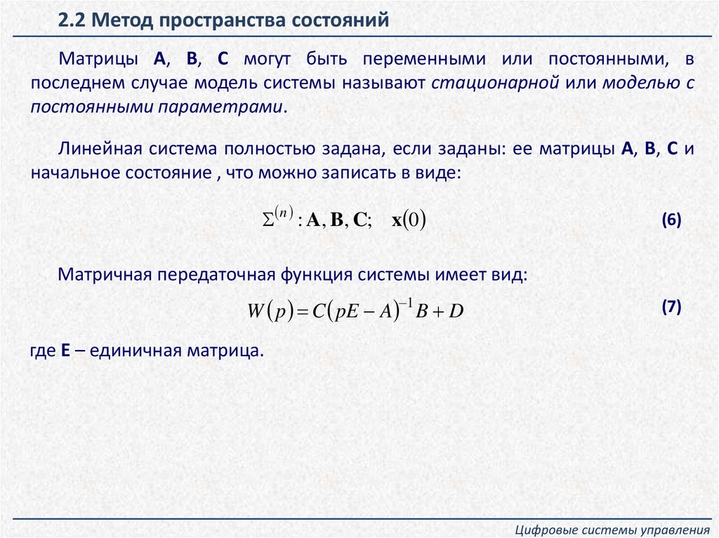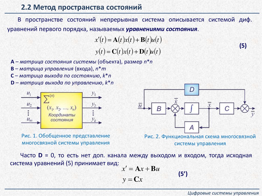 2.2 Метод пространства состоянийМатрицы A, B, C могут быть переменными или постоянными, в