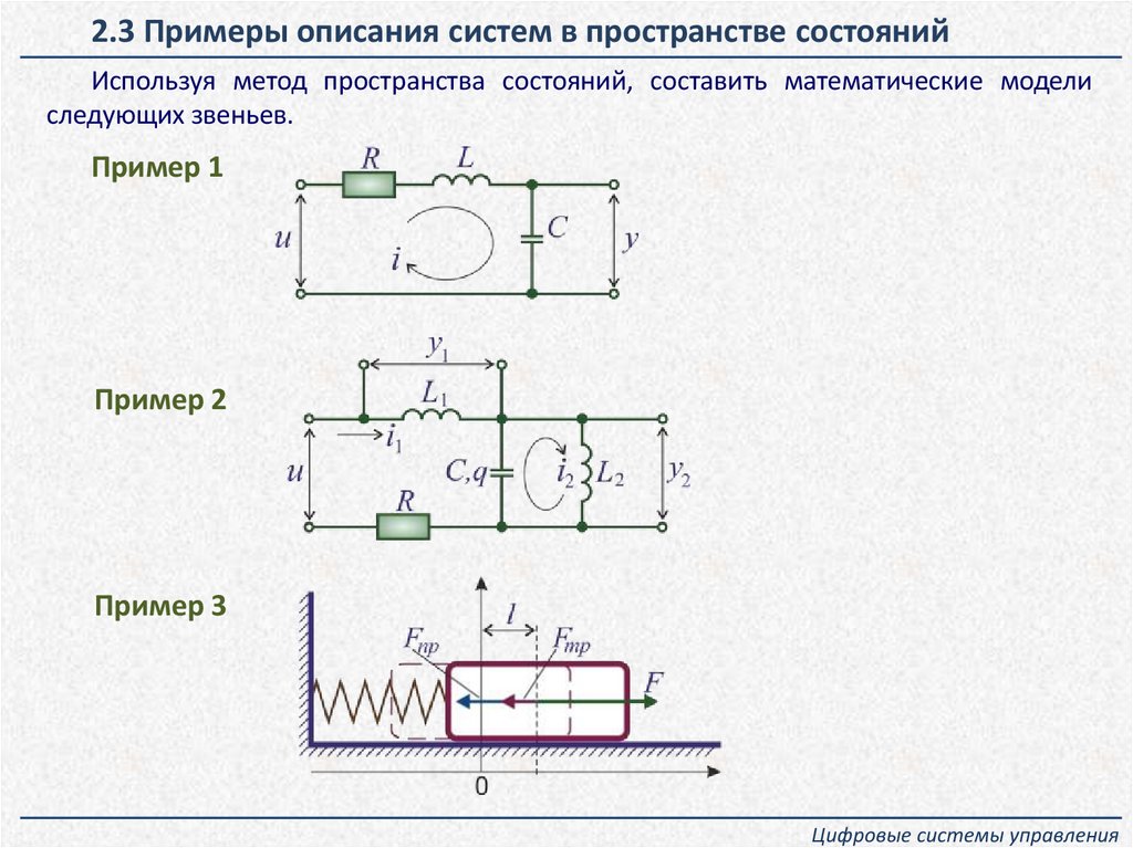2.3 Примеры описания систем в пространстве состоянийИспользуя метод пространства состояний, составить математические модели
