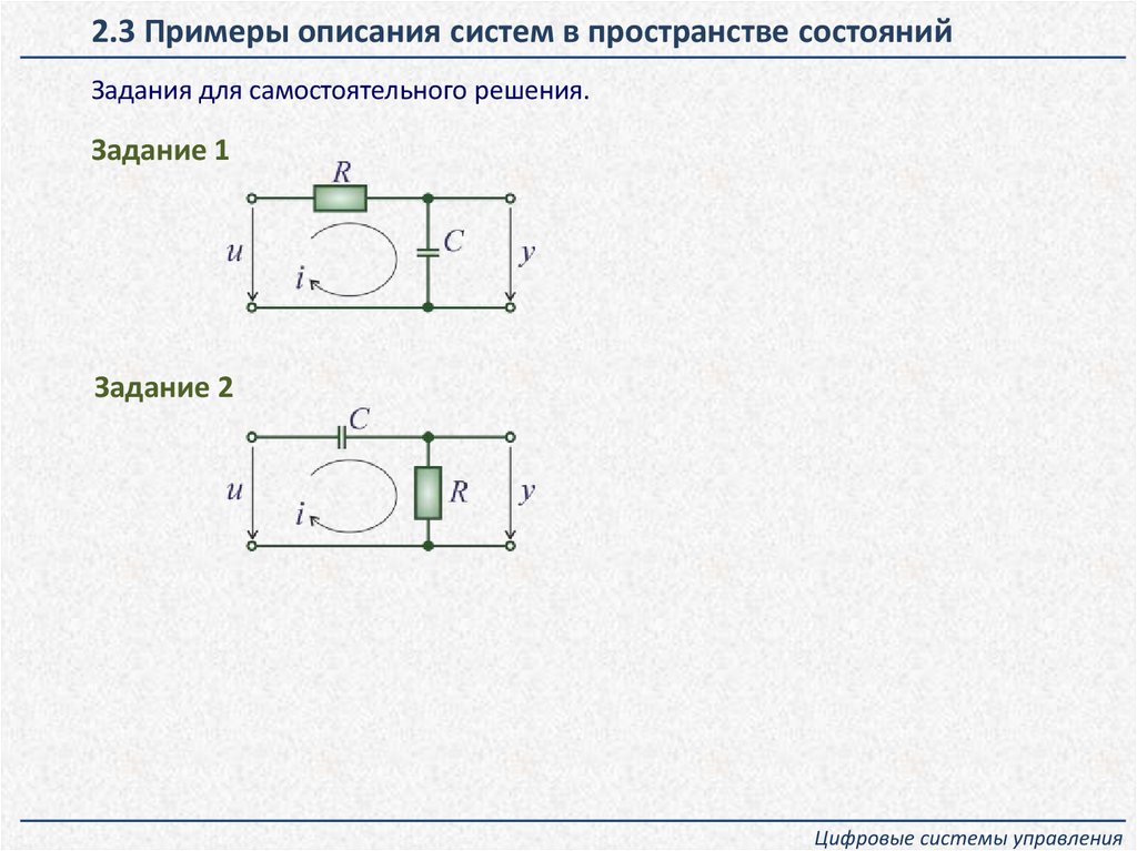 2.3 Примеры описания систем в пространстве состоянийЗадания для самостоятельного решения.