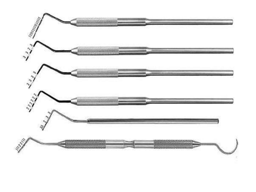 жұмыс бөлігі бар периодонтальды зондтар