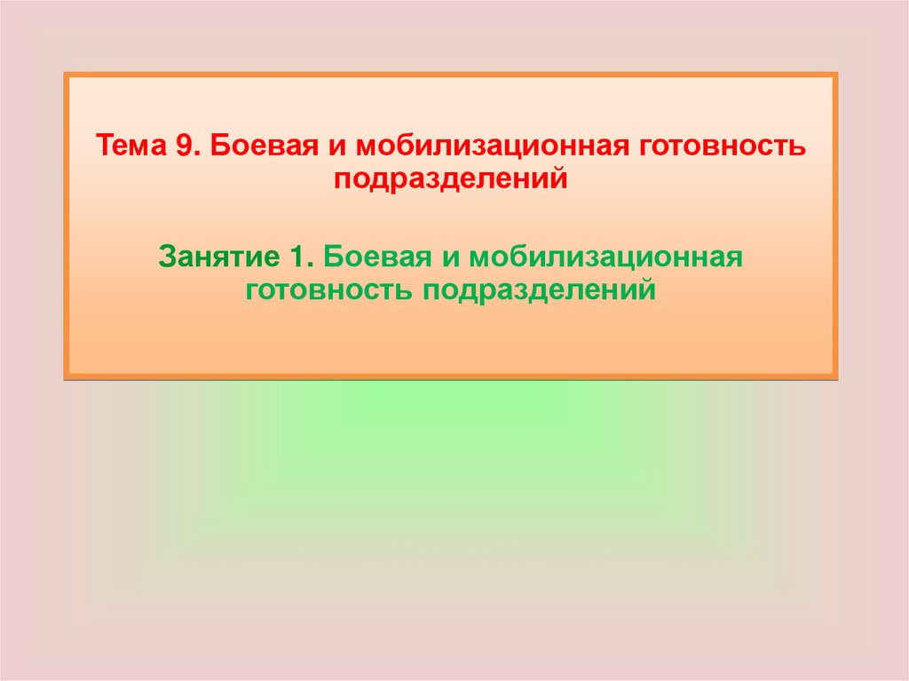 Тема 9. Боевая и мобилизационная готовностьподразделений