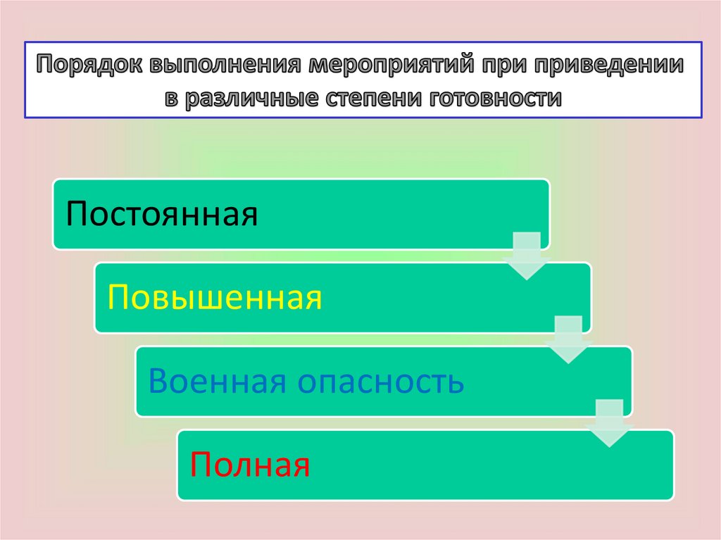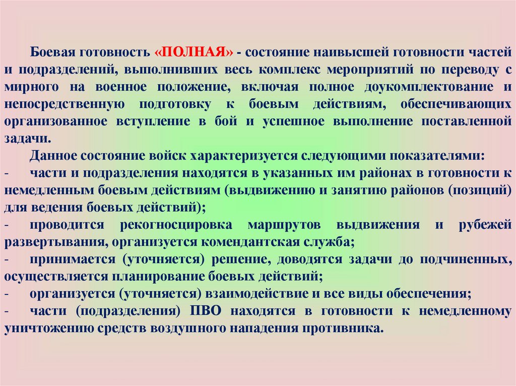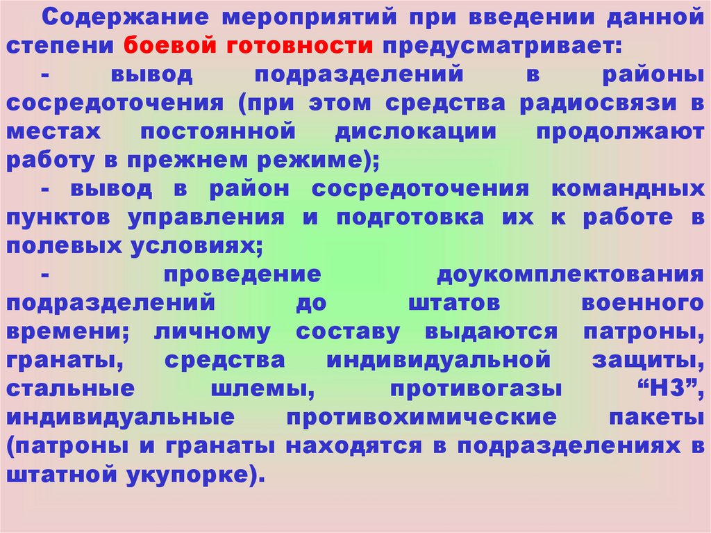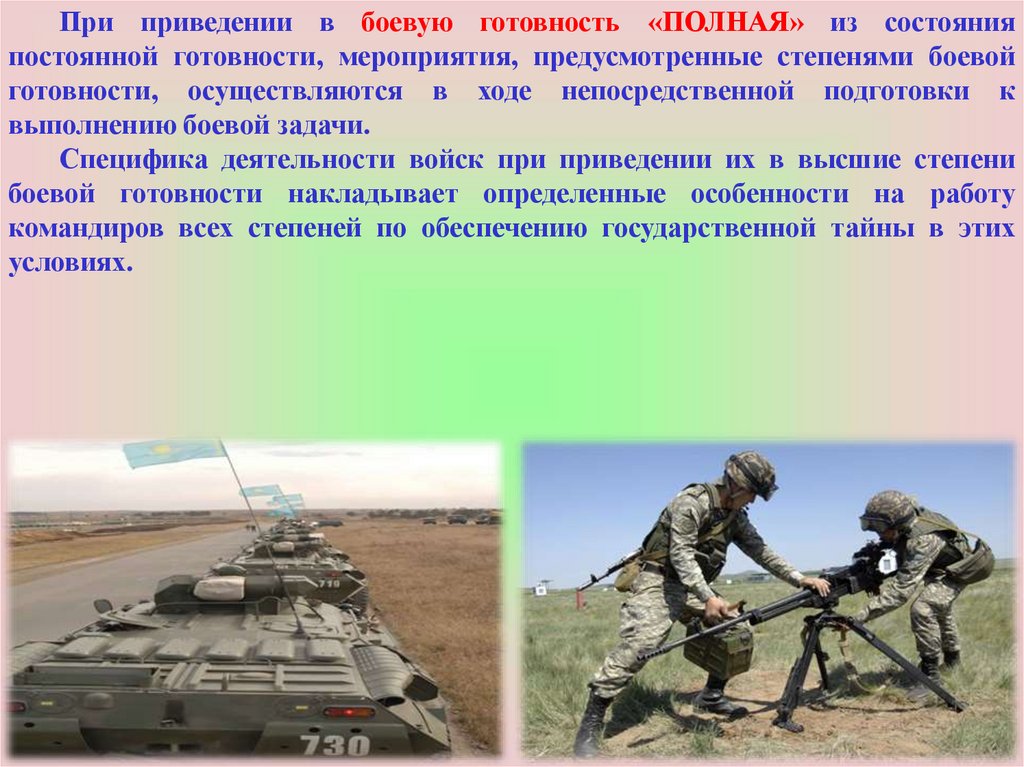 момента получения сигнала на приведение в высшие степени боевой готовности. При приведении