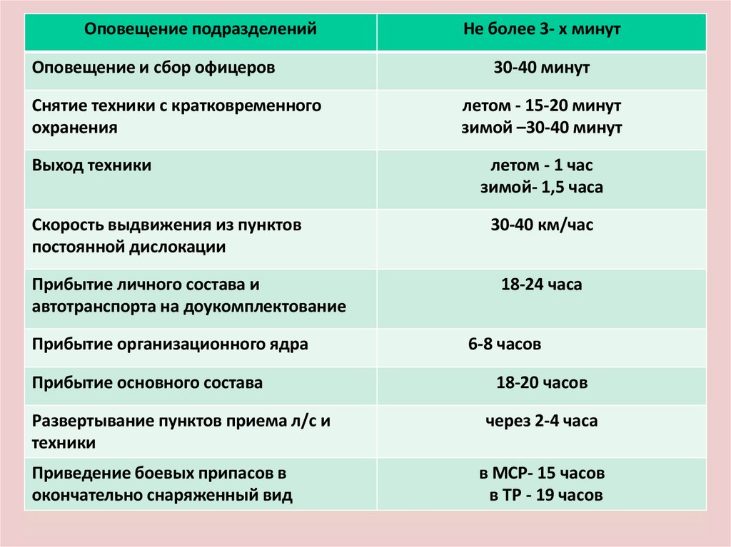 к выполнению боевых задач в установленные сроки. Сроки готовности к выполнению задач исчисляются с