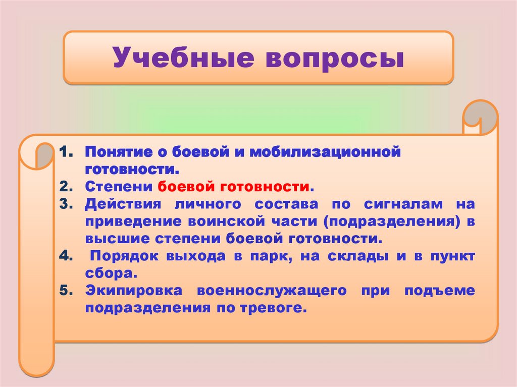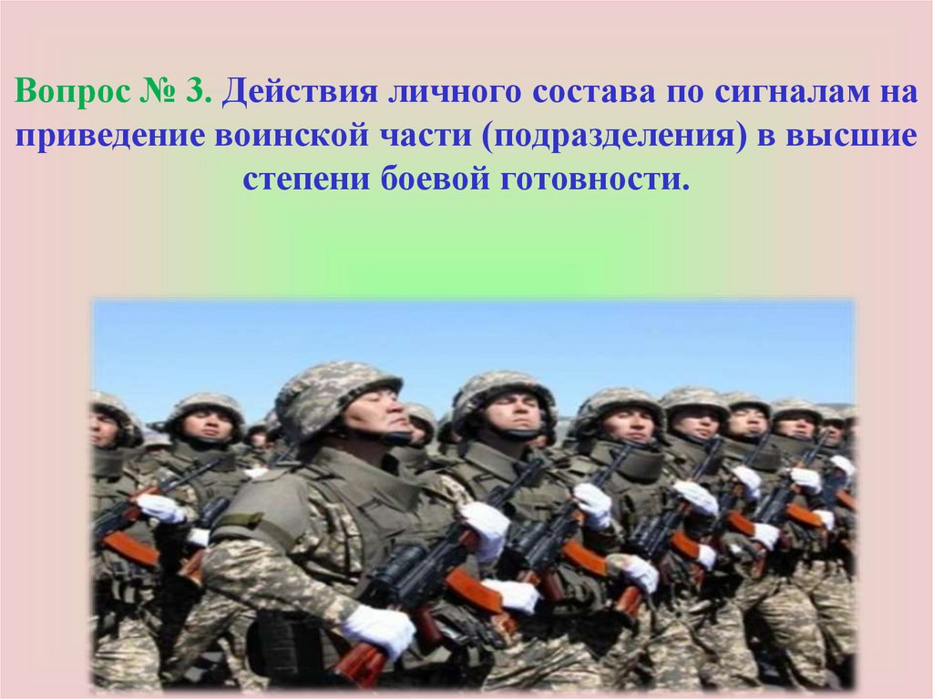 Вопрос № 3. Действия личного состава по сигналам наприведение воинской части (подразделения) в высшие