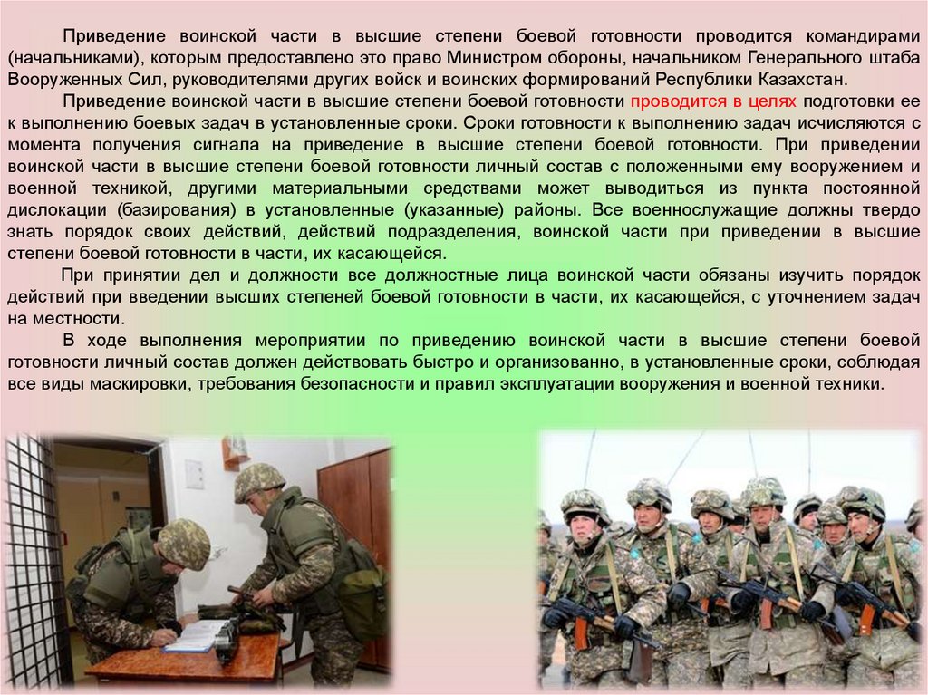 Приведение воинской части в высшие степени боевой готовности проводится в целях подготовки ее