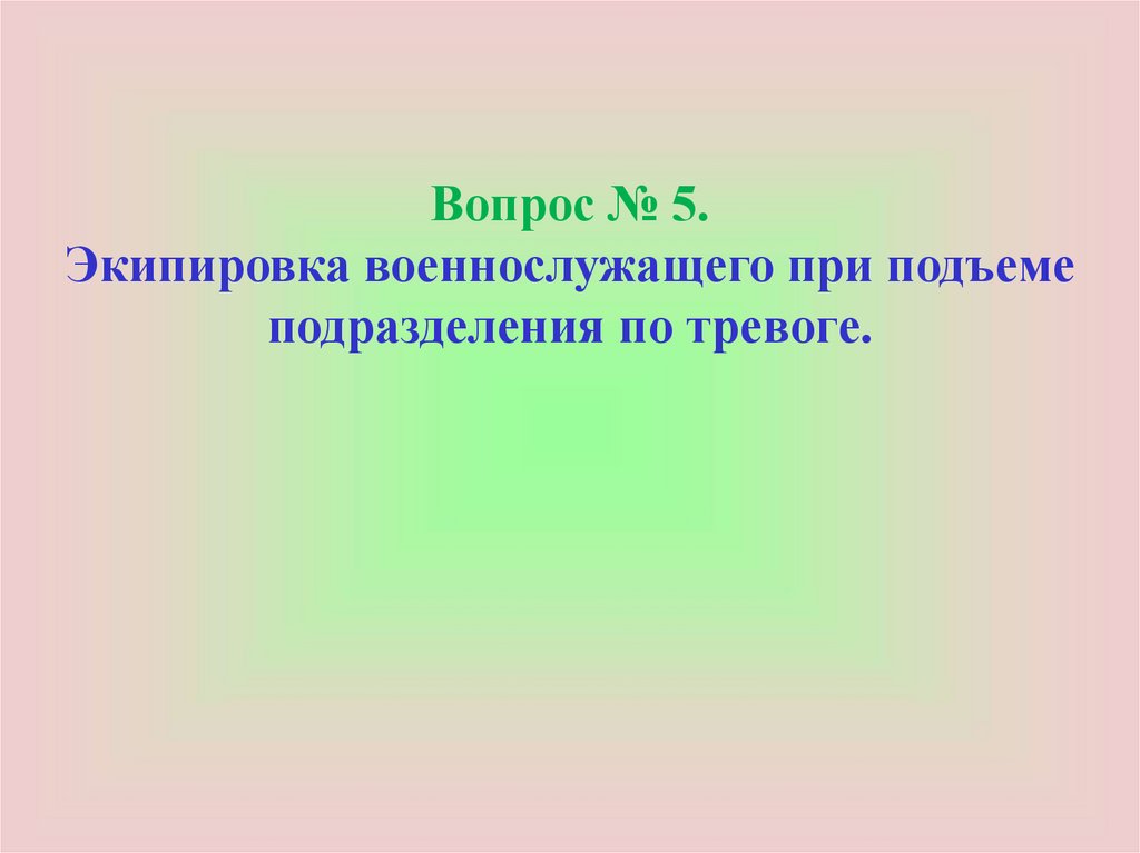 Вопрос № 5.Экипировка военнослужащего при подъеме