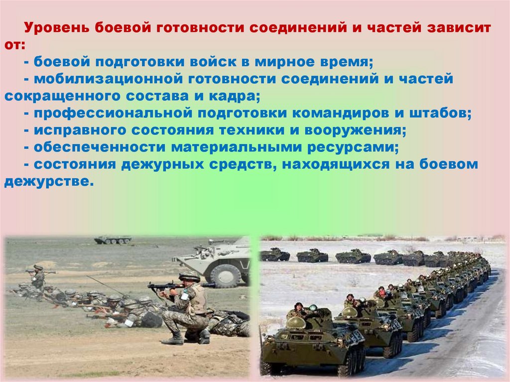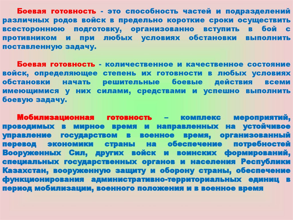 Боевая готовность - это способность частей и подразделенийразличных родов войск в предельно короткие сроки осуществить