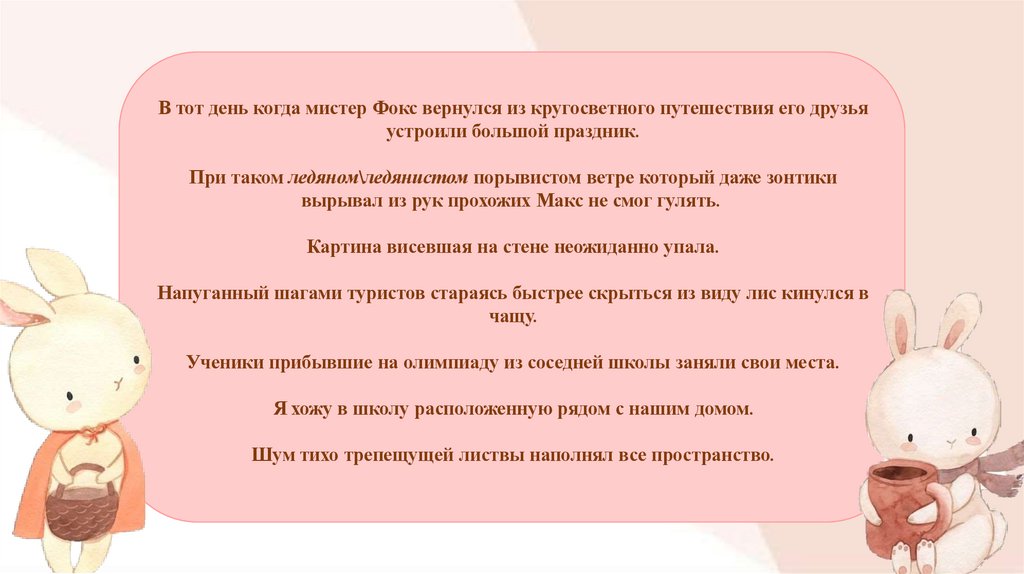 В тот день когда мистер Фокс вернулся из кругосветного путешествия его друзьяустроили большой праздник.