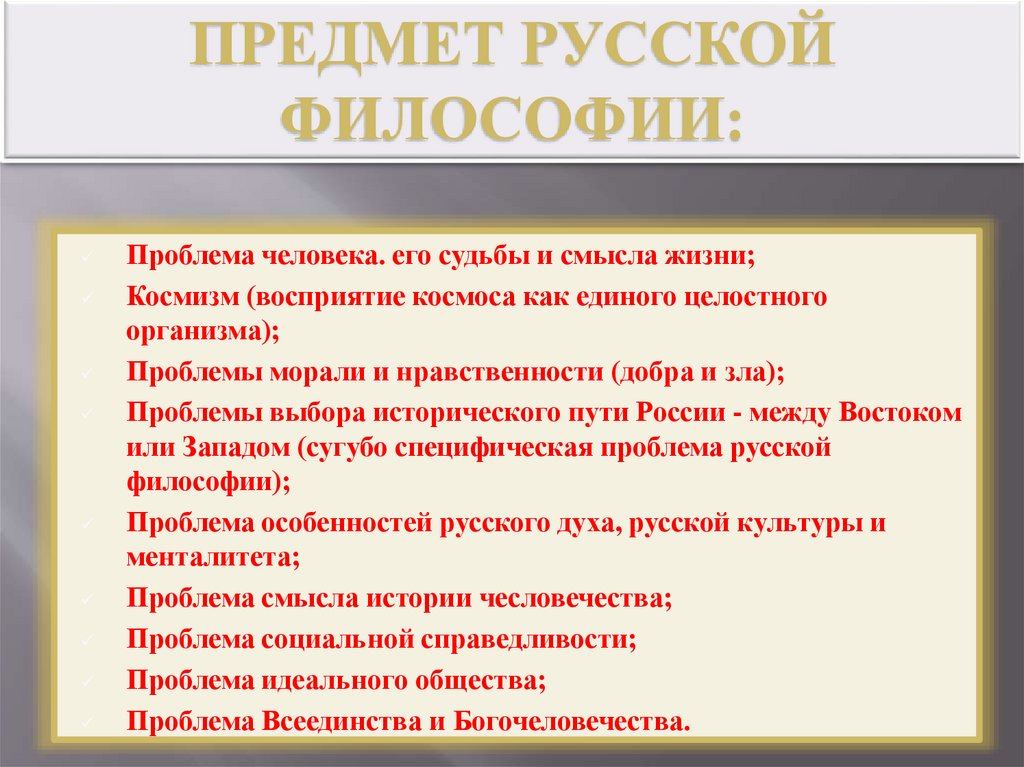 ПРЕДМЕТ РУССКОЙФИЛОСОФИИ: