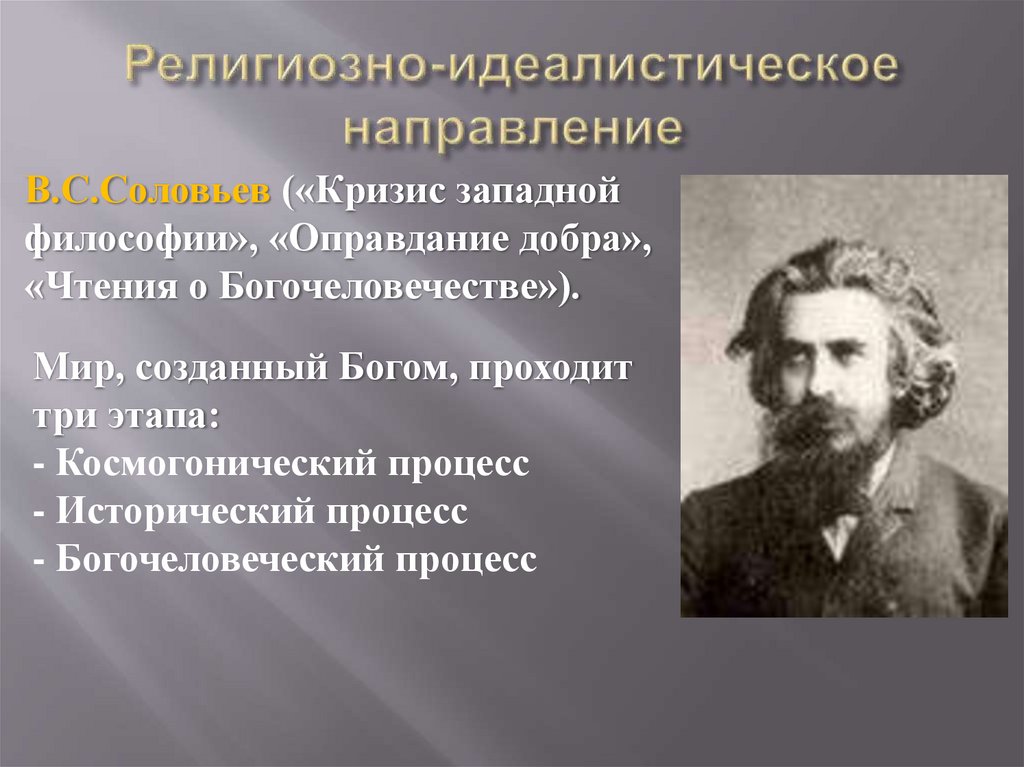 В.С.Соловьев («Кризис западнойфилософии», «Оправдание добра»,