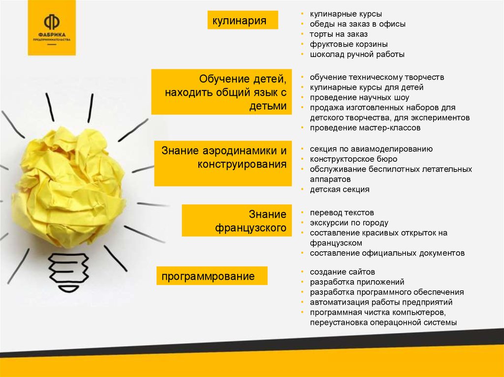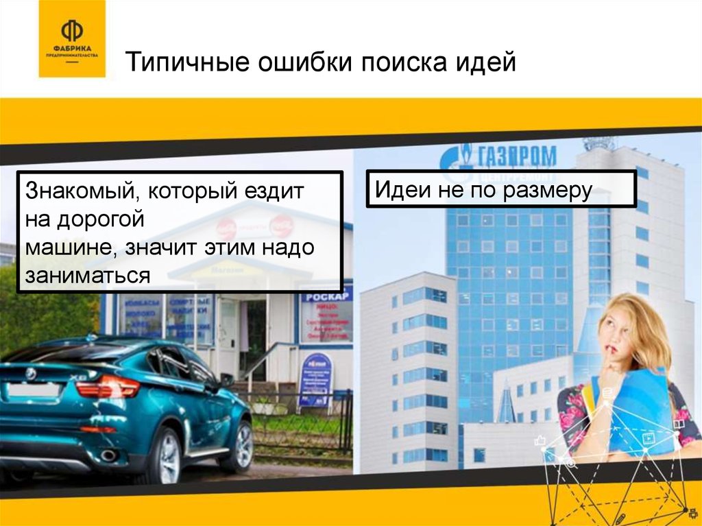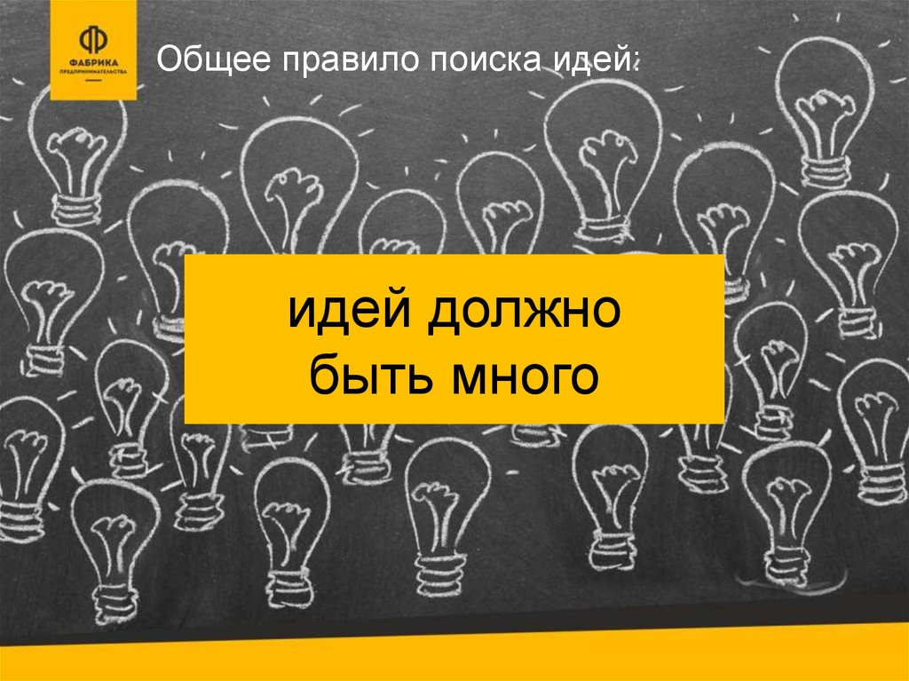 Идея должна быть желательно из тойсферы, в которой у Вас есть компетенции