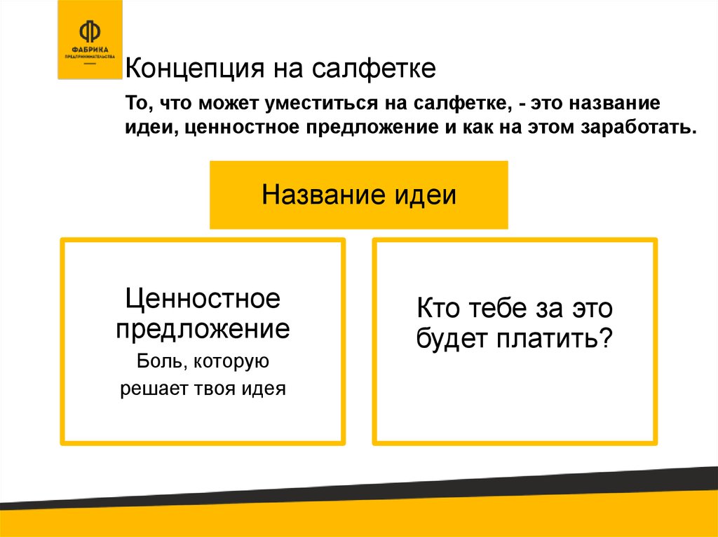 Концепция на салфеткеТо, что может уместиться на салфетке, - это название