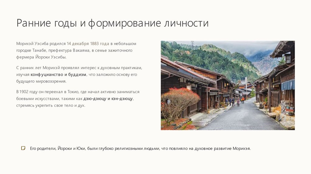 Ранние годы и формирование личностиМорихэй Уэсиба родился 14 декабря 1883 года в небольшом