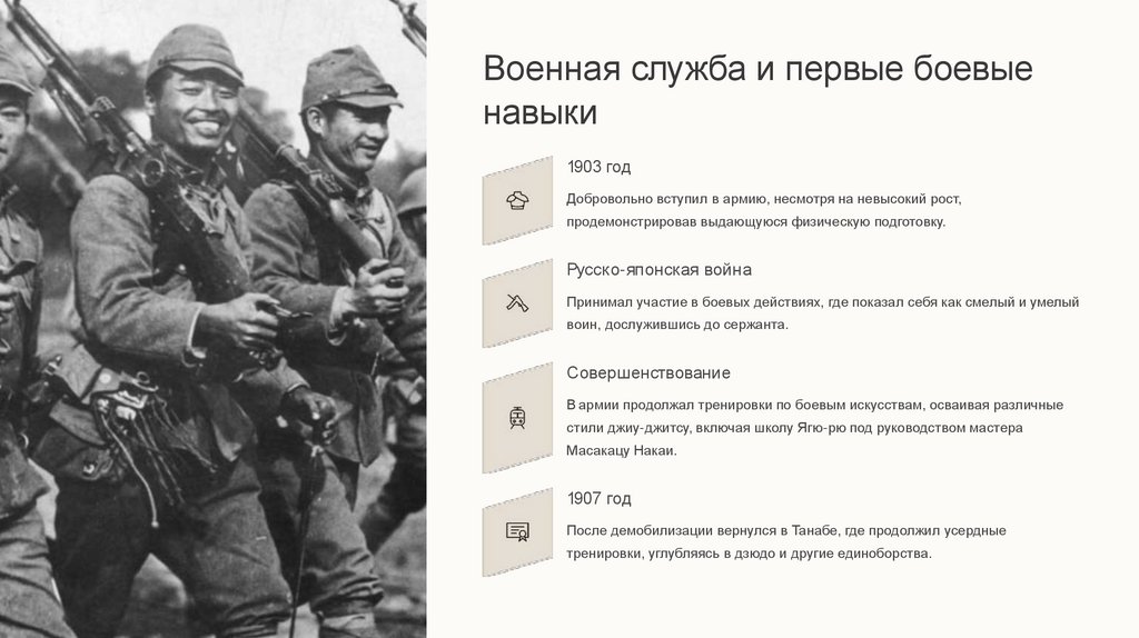 Армейские хитрос ти: Для того чтобы пройти призыв в армию, Морихэй, будучи невысоким, активно занимался гимнастикой и