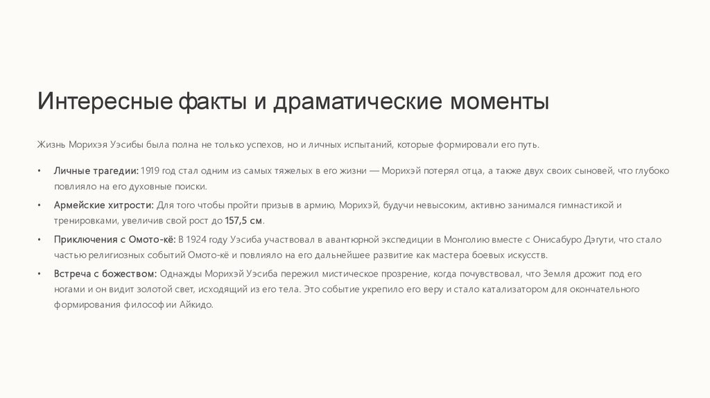 Интересные факты и драматические моментыЖизнь Морихэя Уэсибы была полна не только успехов, но и личных испытаний, которые формировали его путь.