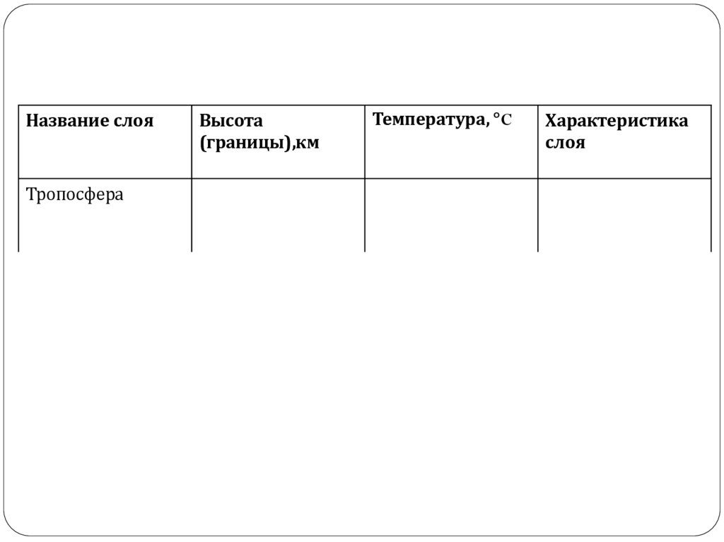 Верхняя граница тропосферы проходит на высоте16–18 км над экватором, 10–12 км в умеренных