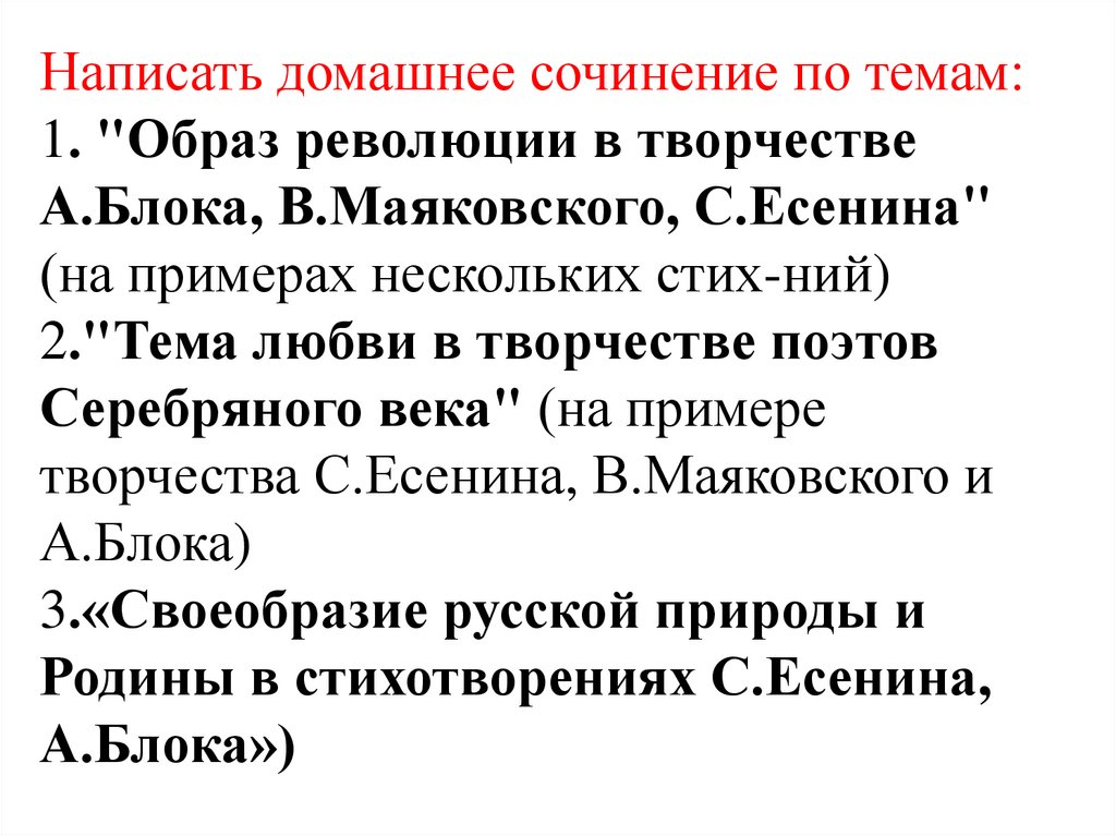 Написать домашнее сочинение по темам:1. "Образ революции в творчестве