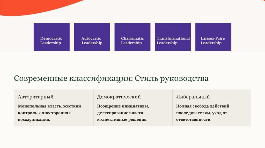 Современные классификации: Стиль руководстваАвторитарный