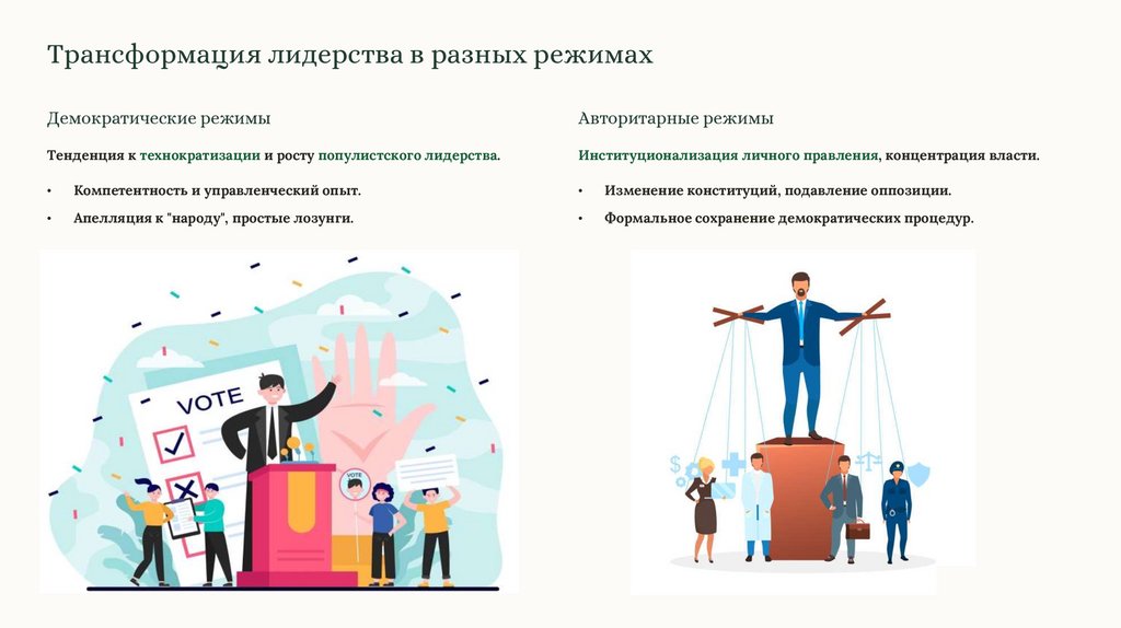 Трансформация лидерства в разных режимахДемократические режимы