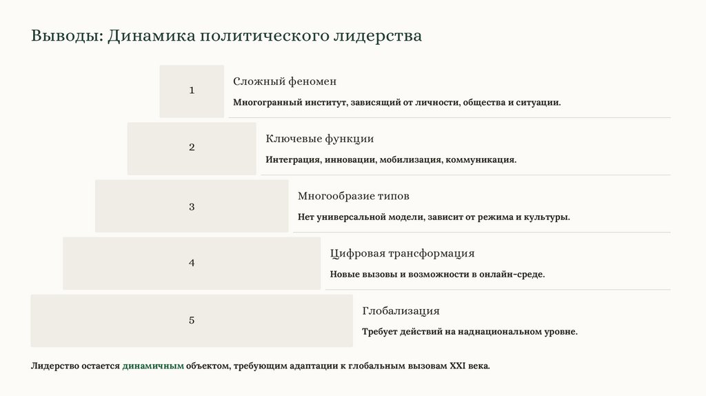 Лидерство остается динамичным объектом, требующим адаптации к глобальным вызовам XXI века.