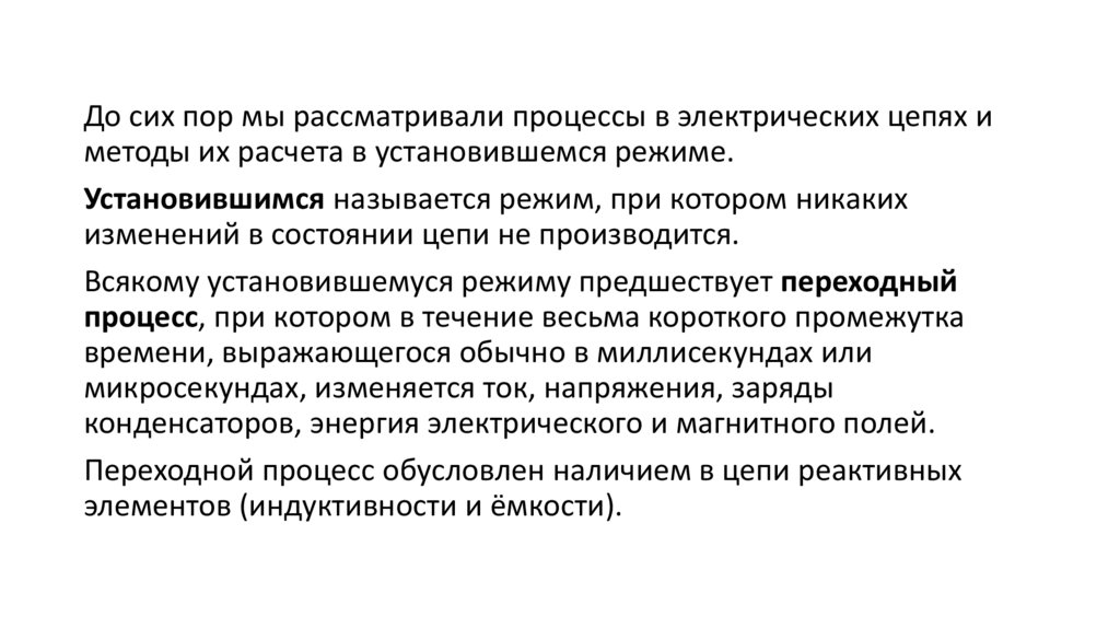 До сих пор мы рассматривали процессы в электрических цепях иметоды их расчета в установившемся режиме.
