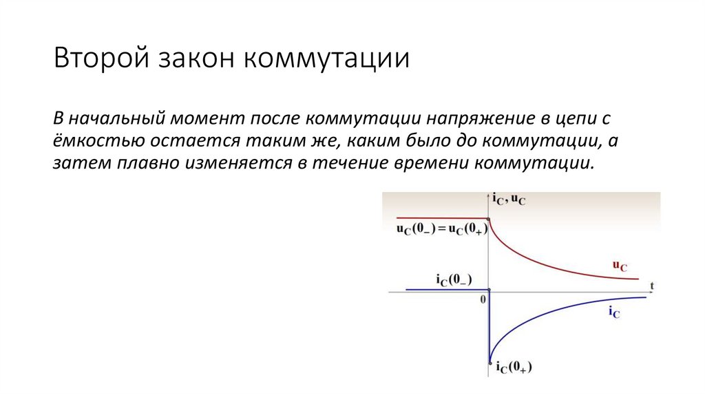 В начальный момент после коммутации напряжение в цепи сёмкостью остается таким же, каким было до коммутации, а