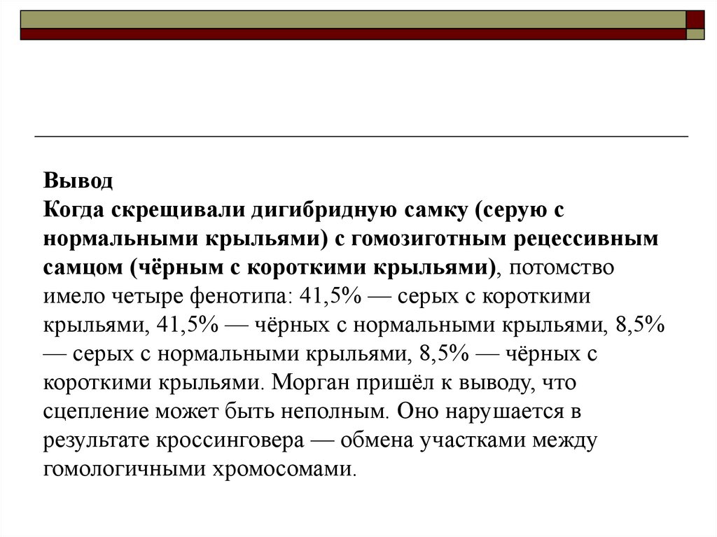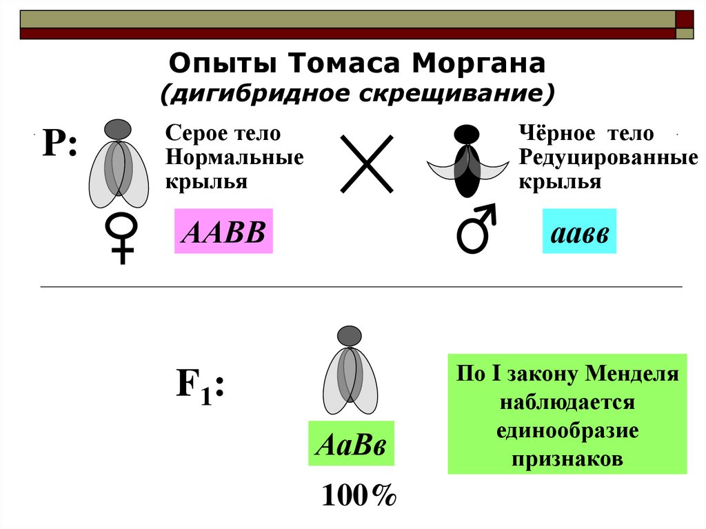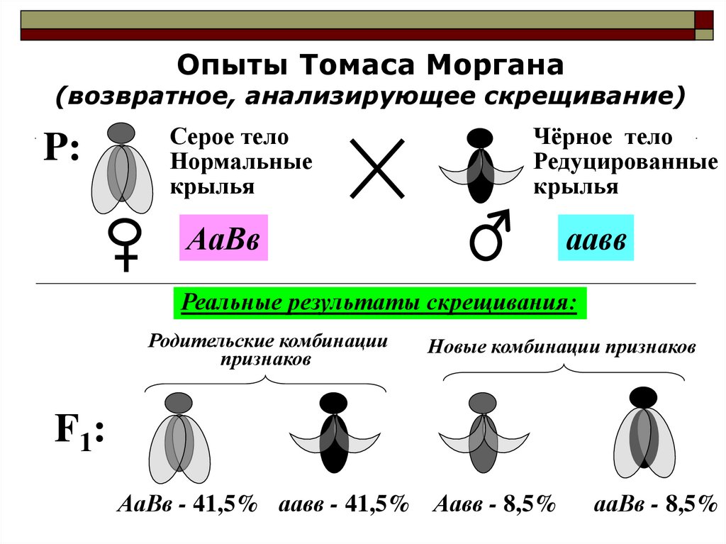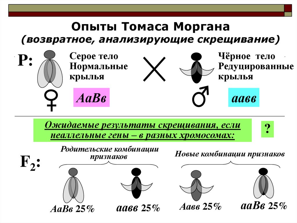 Опыты Томаса Моргана(возвратное, анализирующее скрещивание)