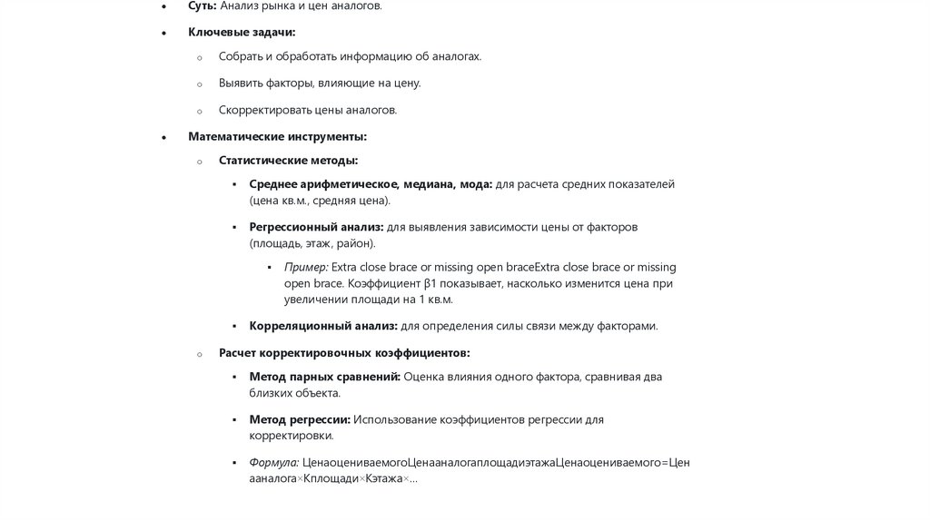 Сравнительный подход: Ценность объекта определяется на основе цен