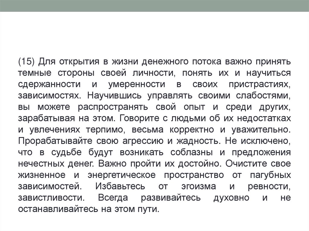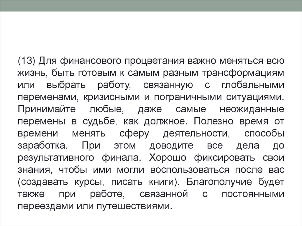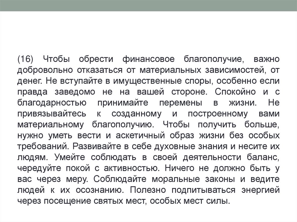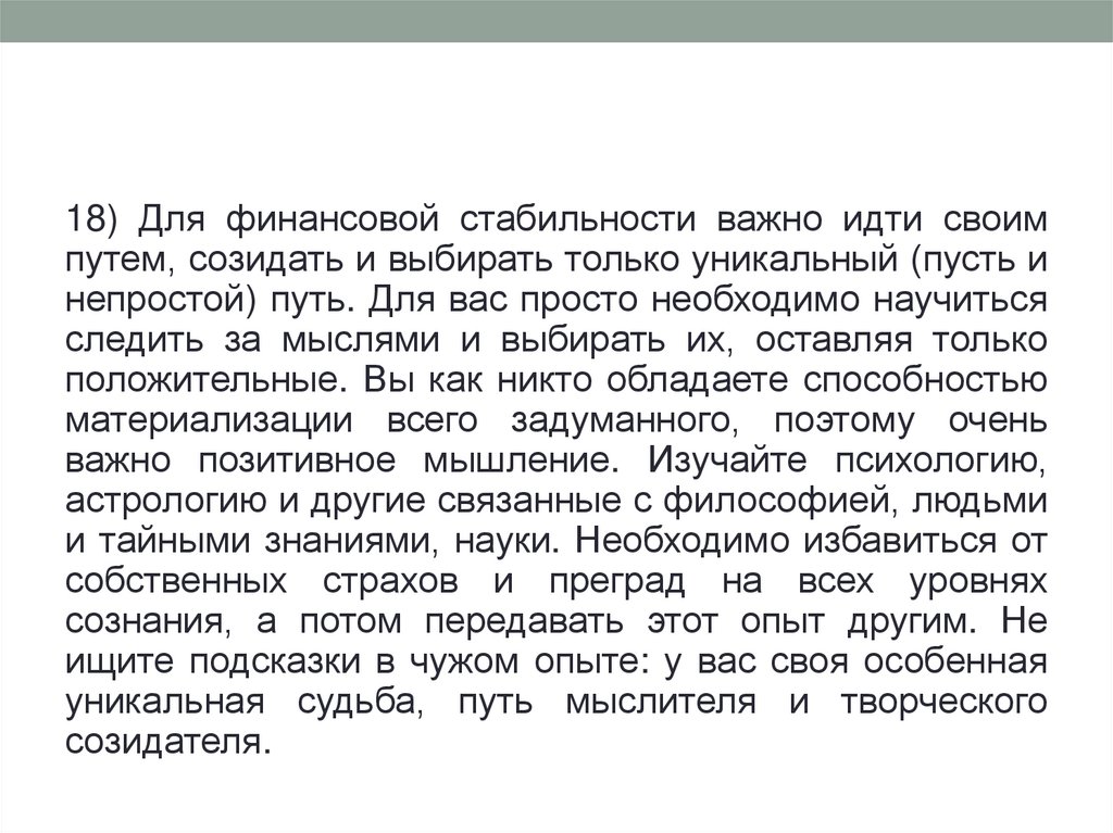 18) Для финансовой стабильности важно идти своимпутем, созидать и выбирать только уникальный (пусть и