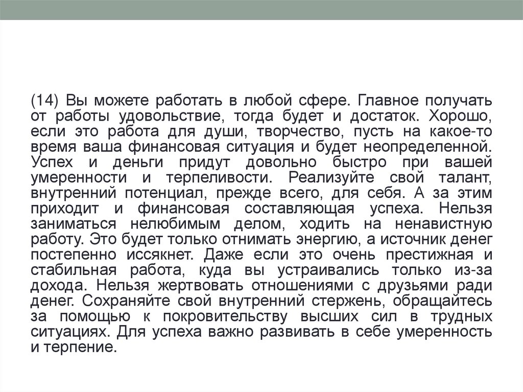 и успеха. Удачным выбором будет род деятельности, где вы будете