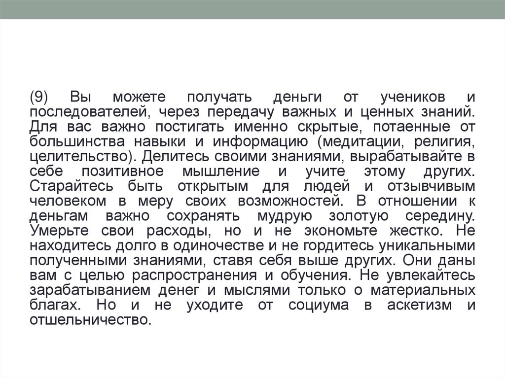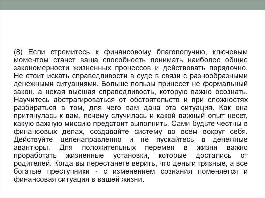 (8) Если стремитесь к финансовому благополучию, ключевыммоментом станет ваша способность понимать наиболее общие