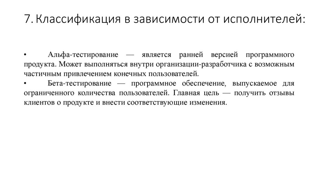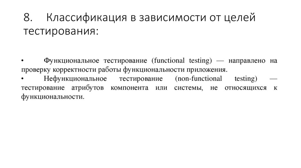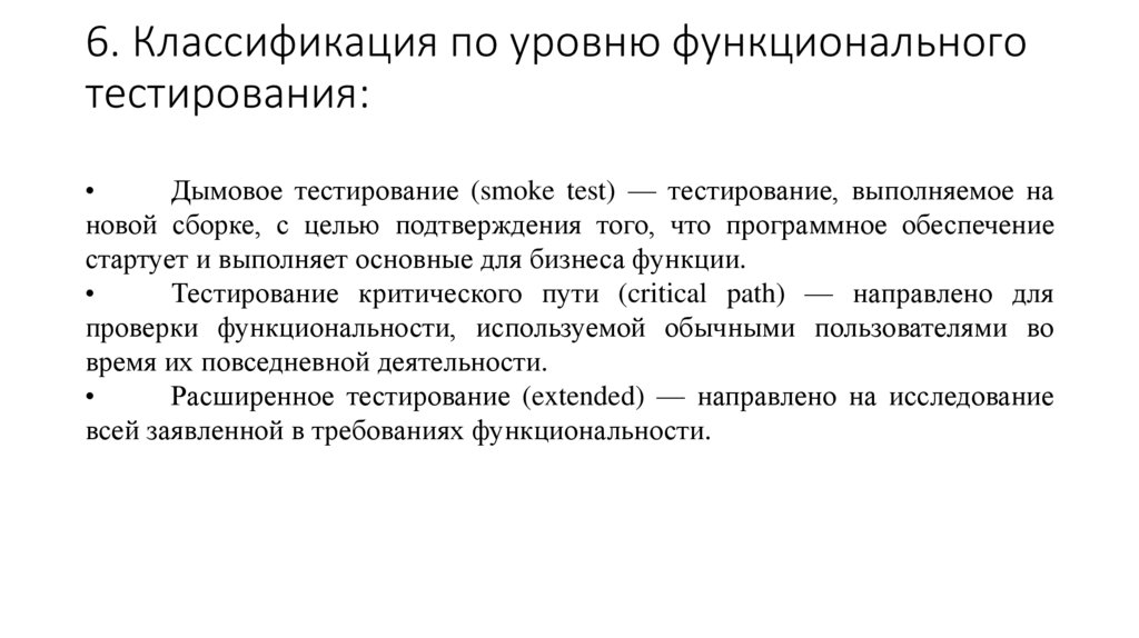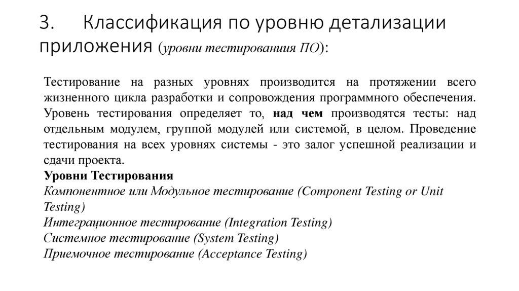 7. 3. Классификация по уровню детализации приложения (уровни тестированиия ПО):