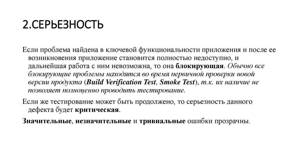 Если проблема найдена в ключевой функциональности приложения и после еевозникновения приложение становится полностью недоступно, и