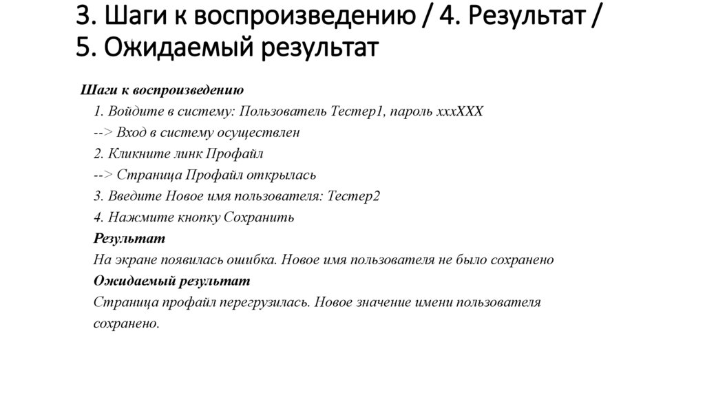 29. 3. Шаги к воспроизведению / 4. Результат / 5. Ожидаемый результат