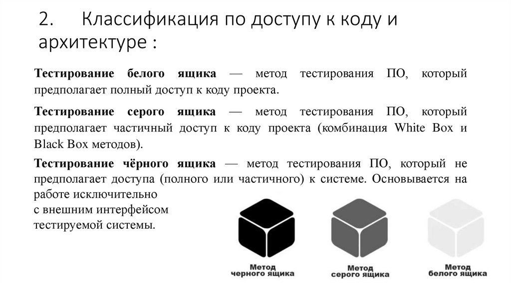 Тестирование белого ящика — методпредполагает полный доступ к коду проекта.
