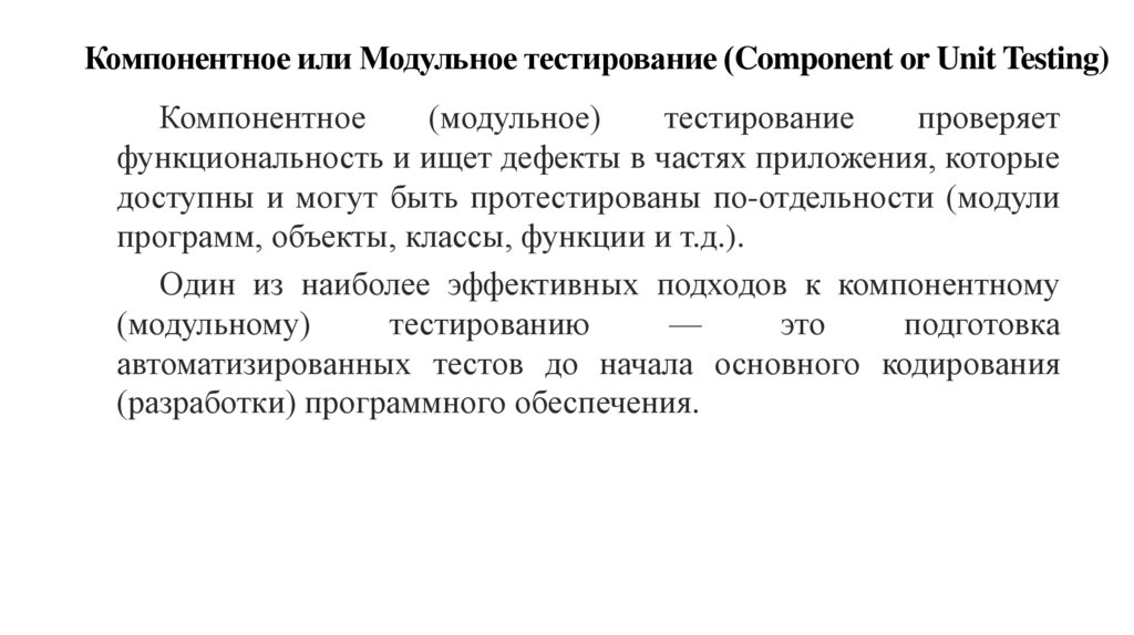 Компонентное или Модульное тестирование (Component or Unit Testing)Компонентное