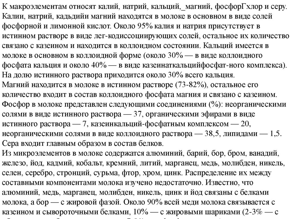 Минеральные вещества. Минеральный состав молока во многом зависит от