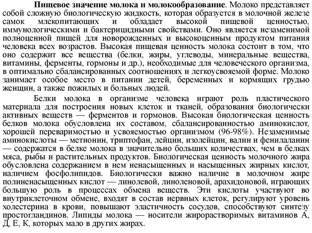 Пищевое значение молока и молокообразование. Молоко представляетсобой сложную биологическую жидкость, которая образуется в молочной железе
