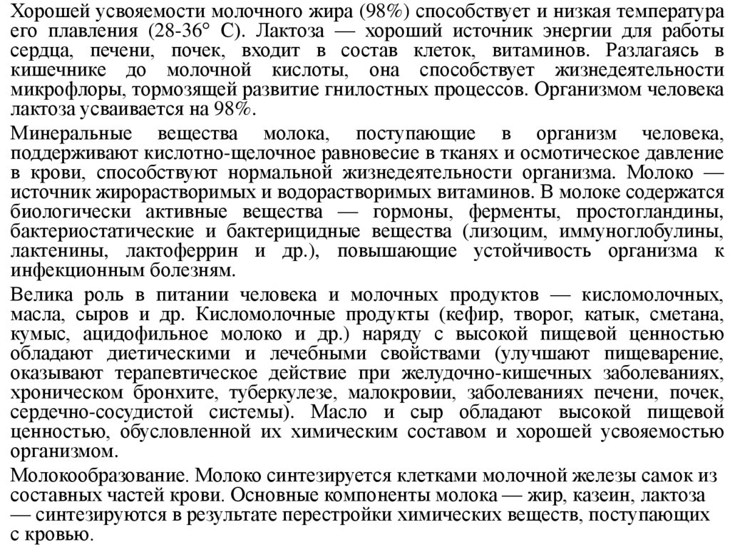 Хорошей усвояемости молочного жира (98%) способствует и низкая температураего плавления (28-36° С). Лактоза — хороший источник энергии для работы
