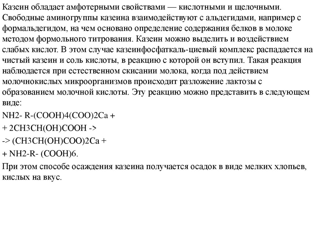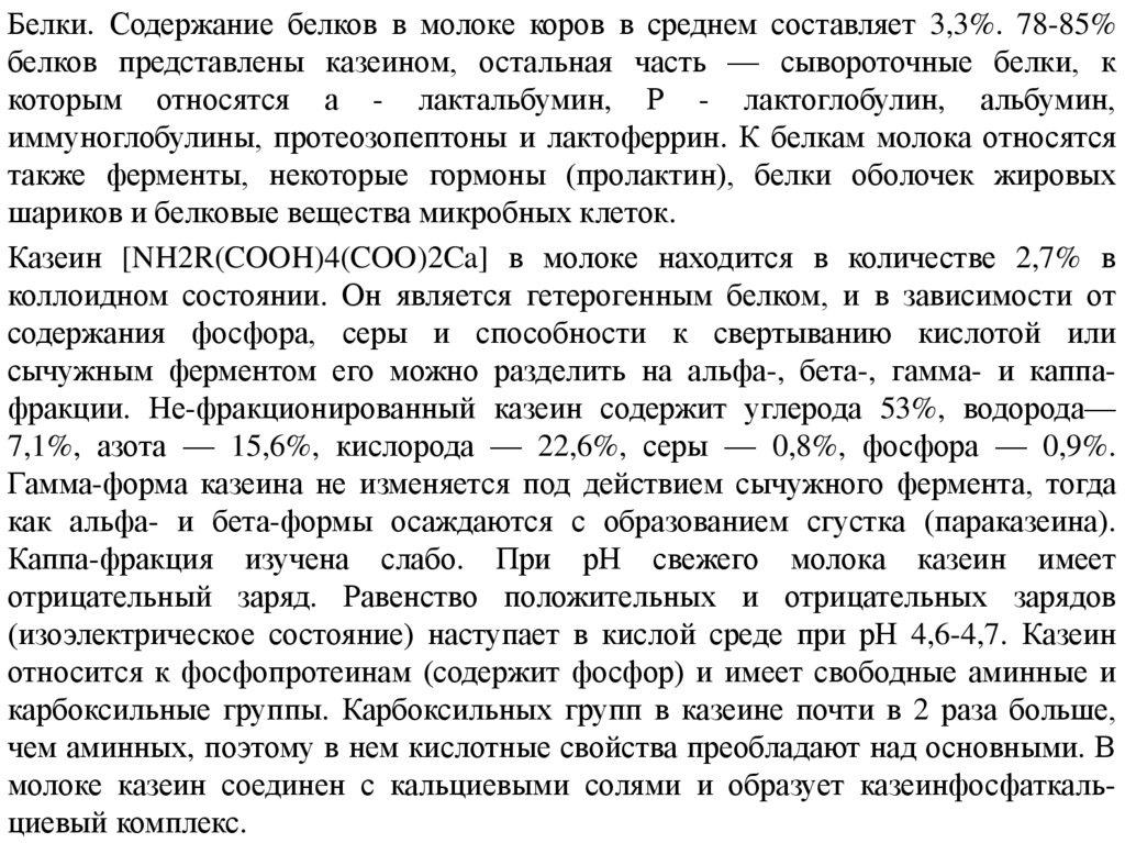 связано с казеином и находится в коллоидном состоянии. Кальций имеется в