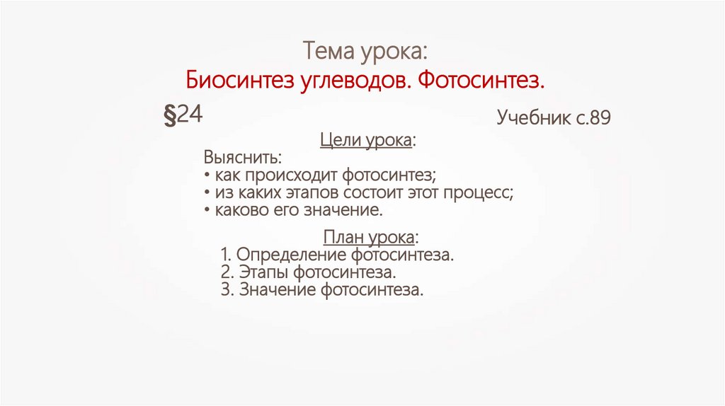 Тема урока:Биосинтез углеводов. Фотосинтез.
