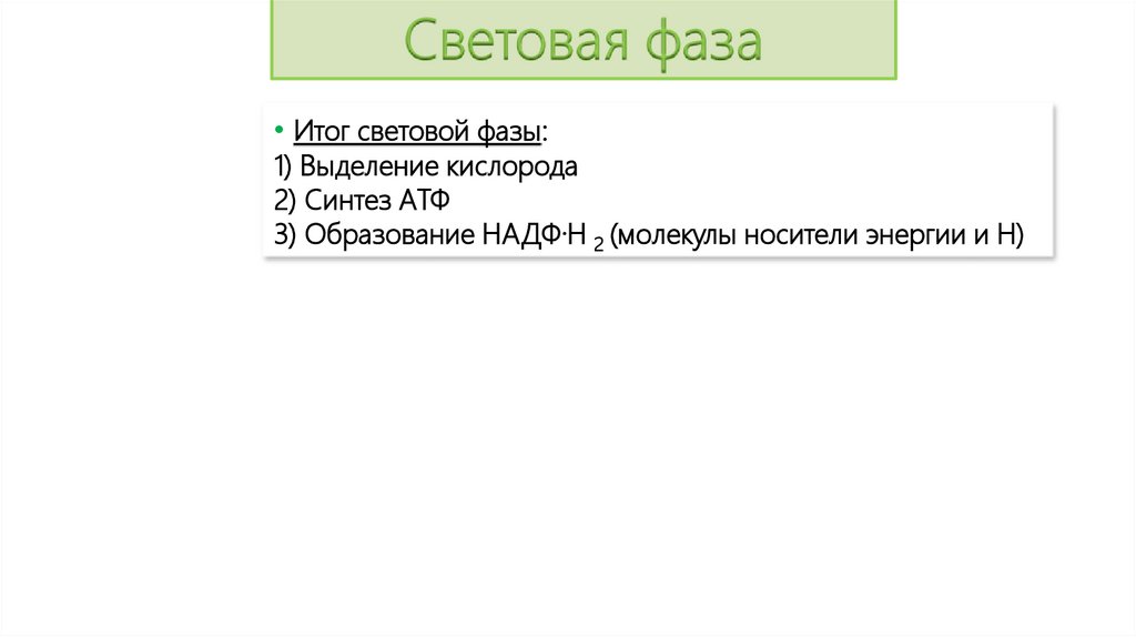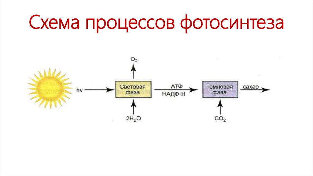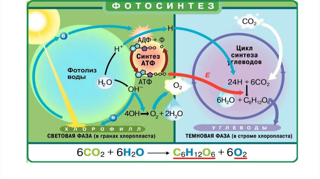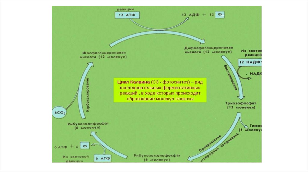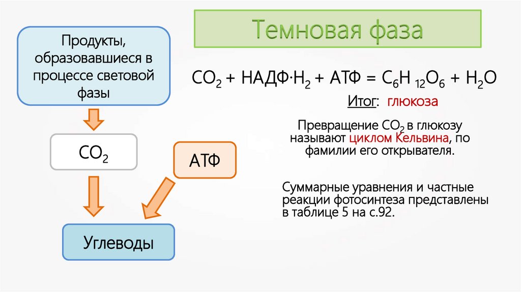 СО2 + НАДФ·Н2 + АТФ = С6Н 12О6 + Н2О
