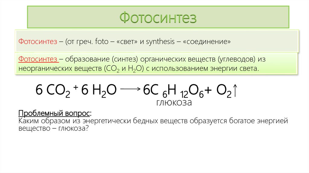 ФотосинтезФотосинтез – (от греч. foto – «cвет» и synthesis – «соединение»